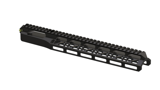 y un total de 12 ranuras M-Lok a los lados. Fabricado en aluminio aeronáutico